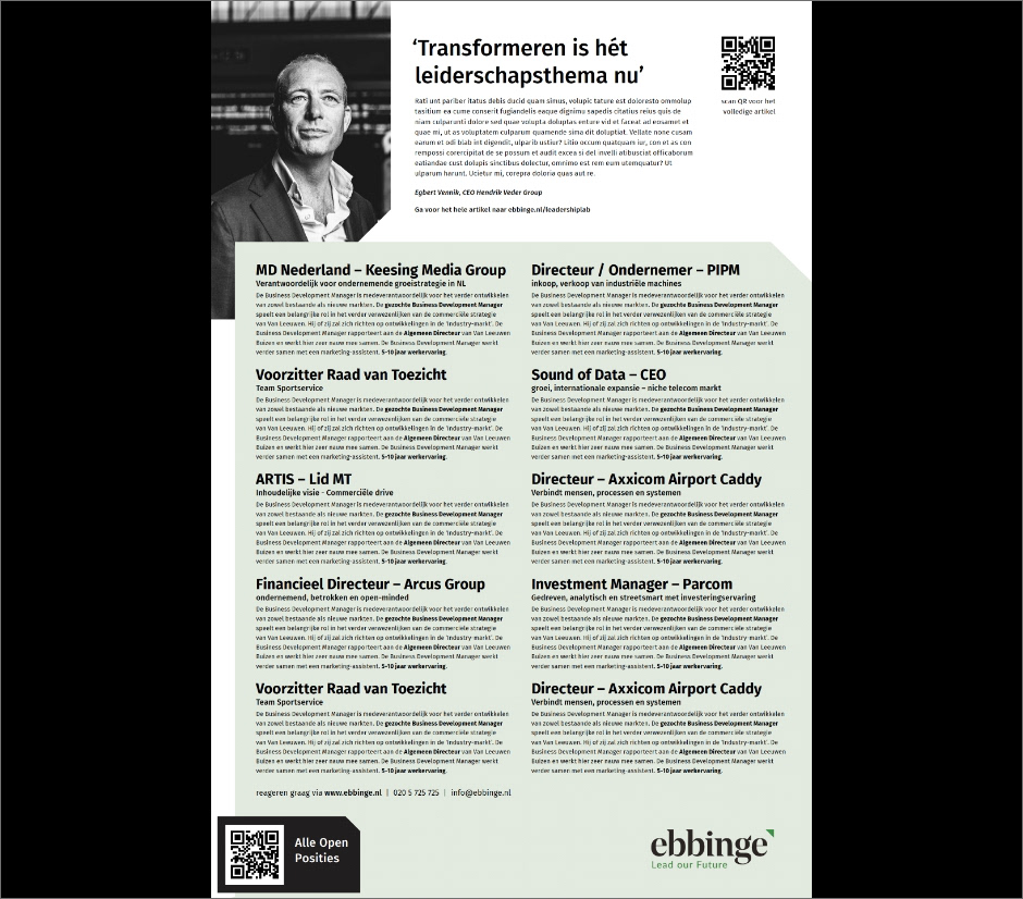 Ebbinge - huisstijl, advertenties, presentaties en merkdoorvertaling